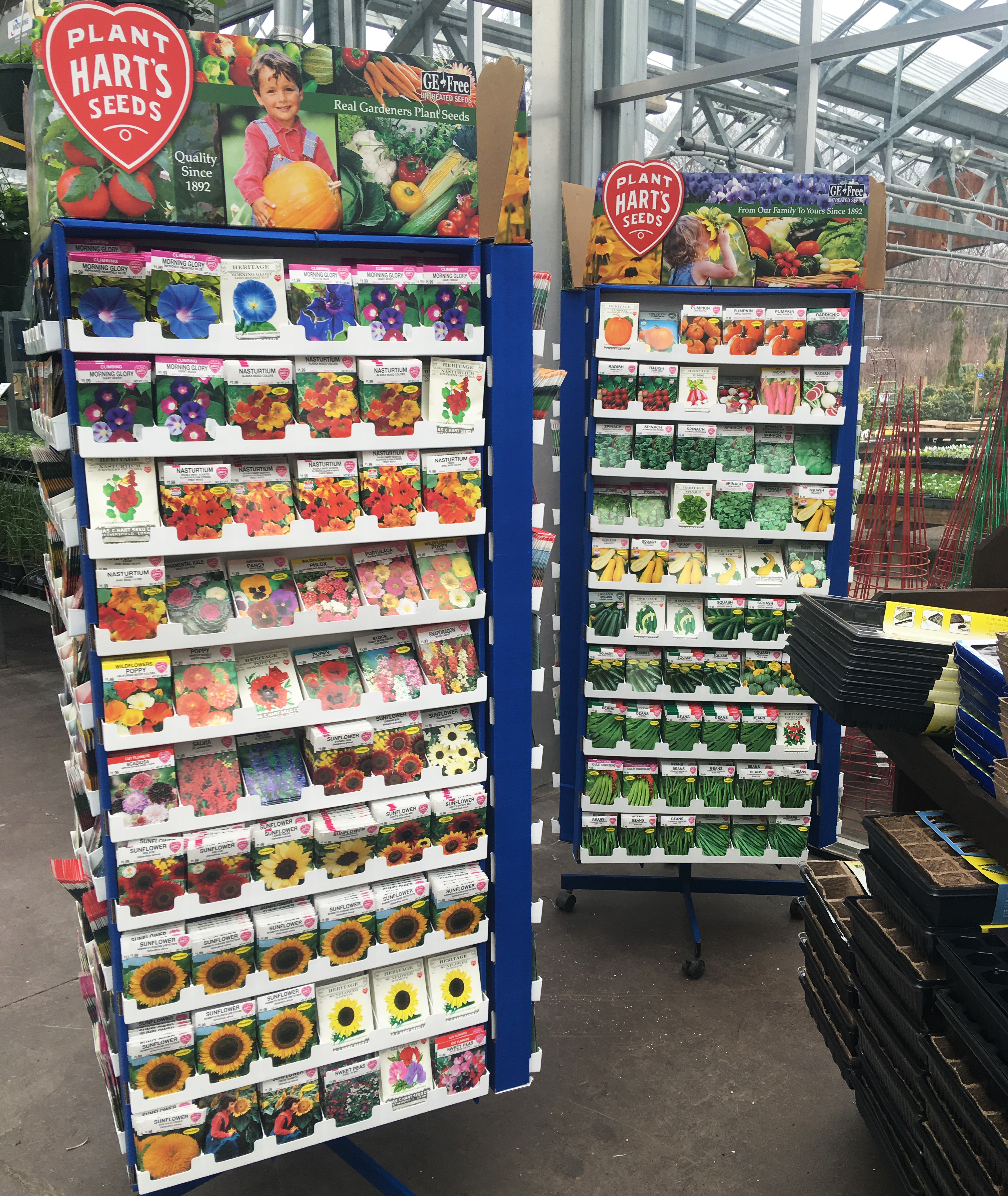 We are proud to carry Hart's seeds, which are non-GMO and locally produced by a family company. We carry vegetable, herb, and flower seeds.